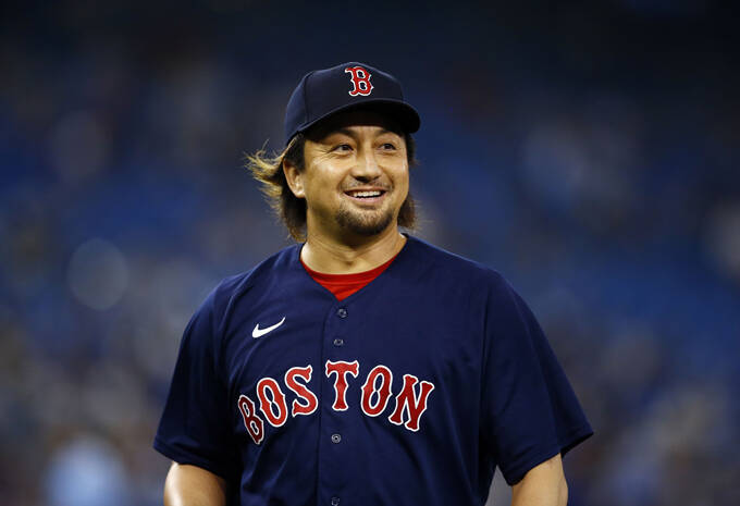 TORONTO, ON AUGUST 08: Hirokazu Sawamura #19 of the Boston Red Sox leaves the field after pitching in the seventh inning during a MLB game against the Toronto Blue Jays at Rogers Centre on August 08, 2021 in Toronto, Canada. Vaughn Ridley/Getty Images/AFP == FOR NEWSPAPERS, INTERNET, TELCOS & TELEVISION USE ONLY == AFP=時事 写真提供:時事通信社