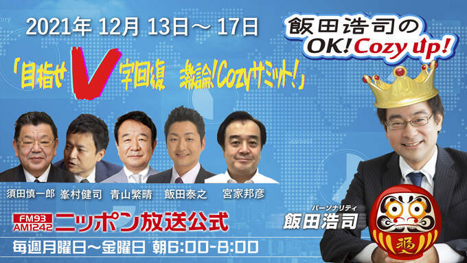 『飯田浩司のOK! Cozy up!』は、12月13日(月)から17日(金)の一週間、番組では『目指せV字回復 激論!Cozyサミット』と題した特別企画を実施する。