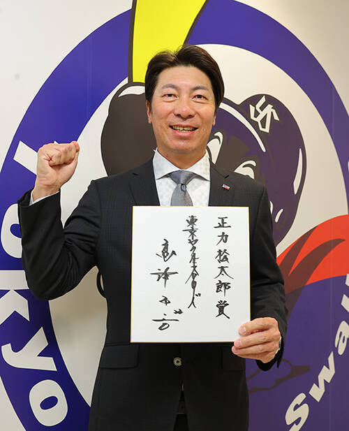 プロ野球 正力松太郎賞の受賞が決まり、写真撮影に臨むヤクルト・高津臣吾監督=2021年12月7日 東京・北青山の球団事務所 写真提供:産経新聞社