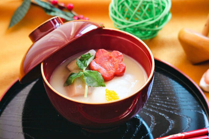 焼いた角餅を使い、具材は鶏肉やシイタケ、小松菜、ニンジン、三つ葉、大根などです。そして汁は、カツオや昆布から採ったすまし汁ですが、味噌仕立ての場合、「みそをつける=失敗する」につながるのを江戸っ子が嫌ったため……と言われています。