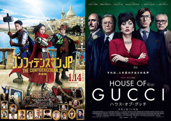 今回は、1月14日公開の『コンフィデンスマンJP 英雄編』と『ハウス・オブ・グッチ』をご紹介します。