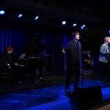 手元のiPadでリスナーから寄せられたツィートを読んで交流を楽しんだ後は、グランドピアノが設置されたメインステージに移動。メインステージ中央に設置されたスタンドマイクを前に浦井は、堀倉彰(クラーキー)の演奏に乗せ、ミュージカル『笑う男 The Eternal Love -永遠の愛-』内で歌う「THE MAN WHO LAUGHS」を力強く独唱した。