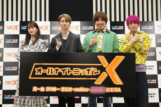月曜~金曜の深夜24時から放送している『オールナイトニッポンX(クロス)』は、2021年4月から放送を開始したオールナイトニッポンブランドの中で新たに始まった放送枠で、バーティカルシアターアプリ「smash.」と連動し、スタジオの様子を生配信している。その『オールナイトニッポンX(クロス)』を担当するパーソナリティもこの会見で発表された。