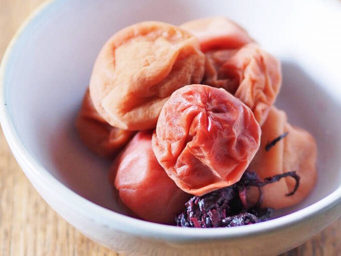 梅干しは、まだ熟していない状態の梅(青梅)の実を塩漬けにして、天日干ししたものです。