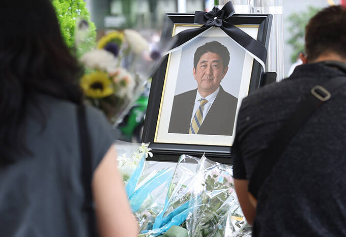 【安倍晋三元首相銃撃 山上徹也容疑者送検】事件現場周辺には献花台も設置され、多くの人たちが手を合わせた=2022年7月10日午前、奈良県奈良市 写真提供:産経新聞社