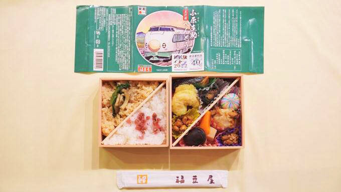 いまから40年前、東北新幹線の開業を記念して誕生した駅弁の1つに、福島県の郡山駅弁・福豆屋が製造する「小原庄助べんとう」があります。東北新幹線の車両が、200系、E2系、E5系と代替わりしたように、この駅弁も2度のリニューアルを経て、平成30(2018)年から「三代目小原庄助べんとう」(1100円)となりました。現在は、200系「やまびこ」が描かれた40周年の記念掛け紙となっています。
