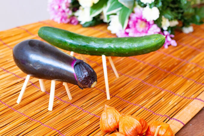 お盆の時期にお供えするものの1つに、キュウリやナスに割り箸などで足を付けたものがあります。キュウリは「馬」を表し、先祖の霊が来るときは「足の速い馬に乗って少しでも早く来てくれますように」という意味があります。