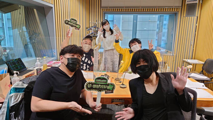 (左から)サンドウィッチマン・伊達みきお、ランジャタイ・国崎和也、ニッポン放送・東島衣里アナウンサー、ランジャタイ・伊藤幸司、サンドウィッチマン・富澤たけし