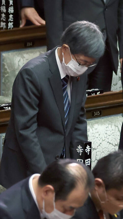 衆院本会議に臨む寺田稔前総務相=2022年11月21日午後、国会・衆院本会議場 写真提供:産経新聞社