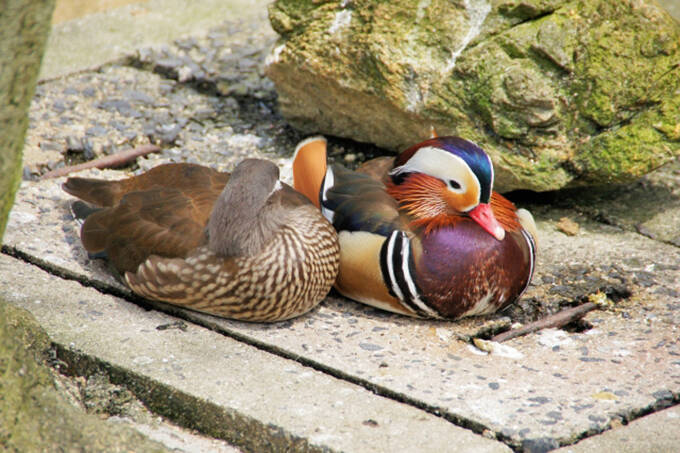 オシドリが夫婦でいる期間は、繁殖前と繁殖期の合わせて5ヵ月程度だそうです。繁殖期を過ぎるとすべてのペアが関係を解消し、一旦リセットするのだとか。
