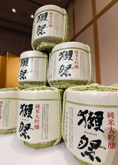 DASSAI DESIGN AWARD2019 会場に展示された「獺祭純米大吟醸」のこもかぶり=2020年1月23日午前、東京・内幸町の帝国ホテル 写真提供:産経新聞社