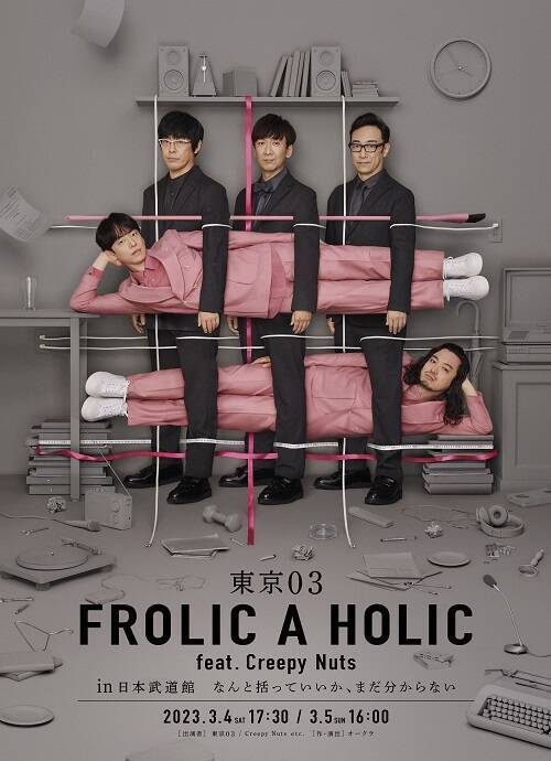 オールナイトニッポン55周年公演として、豪華コラボレーションが誕生。2023年3月4日(土)・5日(日)に『東京03 FROLIC A HOLIC feat. Creepy Nuts in 日本武道館 なんと括っていいか、まだ分からない』 が上演される。