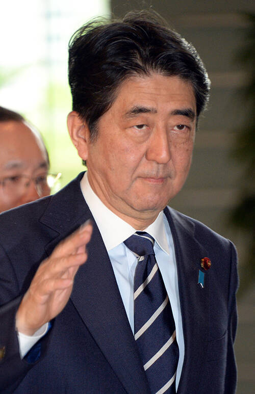 官邸に入る安倍晋三首相=2015年5月7日午前、首相官邸 写真提供:産経新聞社