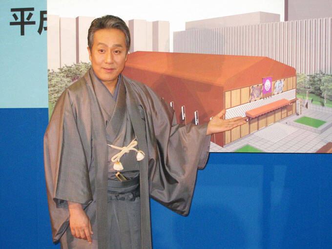 平成中村座を率いてニューヨークで公演を行う歌舞伎役者の中村勘九郎。リンカーンセンターに建てる仮設劇場のイメージ図を紹介 撮影日:2004年02月19日 写真提供:産経新聞社