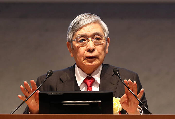 日本経済団体連合会の第11回審議会で講演する日本銀行の黒田東彦総裁=2022年12月26日午後、東京都千代田区 写真提供:産経新聞社