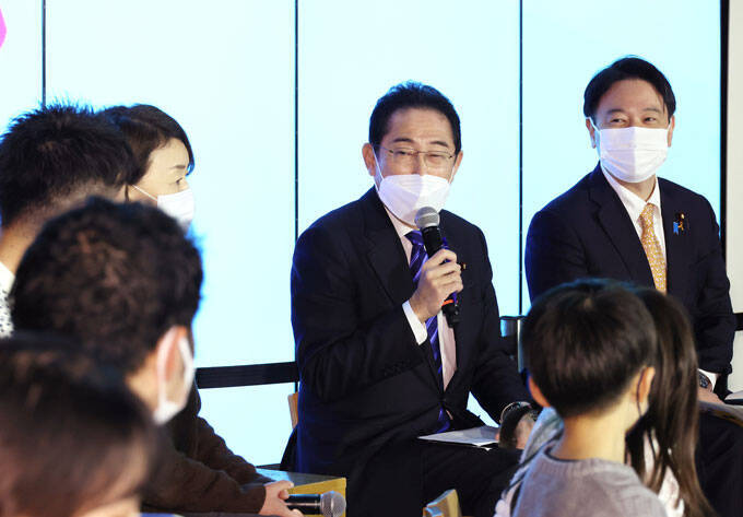 子育てに携わる当事者との「こども政策対話」で意見を交わす岸田首相(中央)=2023年2月4日午後、福井県坂井市 ~首相官邸HP https://www.kantei.go.jp/jp/101_kishida/actions/202302/04isikawa_fukui.html