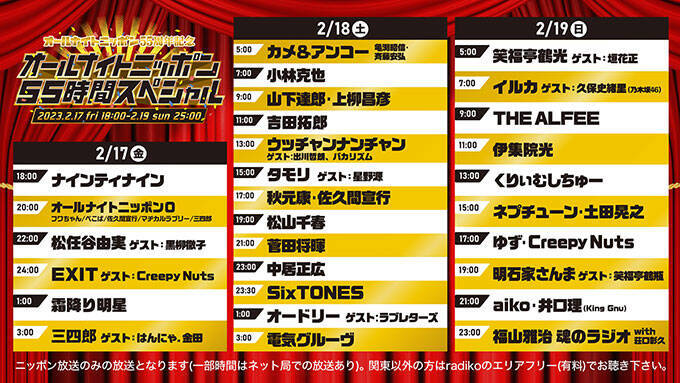 オールナイトニッポン55周年記念「オールナイトニッポン55時間スペシャル」タイムテーブル