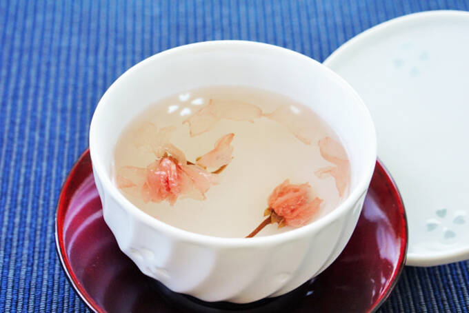 そんな桜を使った飲みものに「桜湯(桜茶)」があります。桜の花びらを梅酢と塩で漬け、お湯を注いだものです。桜湯に使われる桜の花は、満開前の八重桜。お湯を注ぐことで淡いピンクに色づき、ほのかな塩味と桜の香りがします。