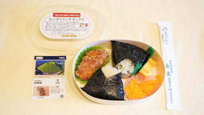 伊東線・伊東駅で販売されている、祇園の「おにぎりランチボックス」 -