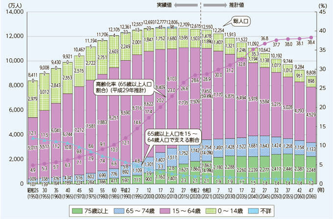 (出典)内閣府(2022)「令和4年版高齢社会白書」 https://www8.cao.go.jp/kourei/whitepaper/w-2022/zenbun/pdf/1s1s_01.pdf