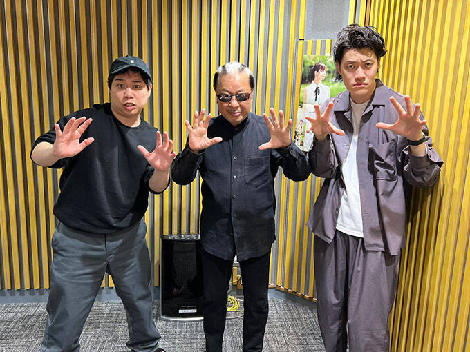 霜降り明星・せいや(左)粗品(右)とゲスト出演したMr.マリック(中央)