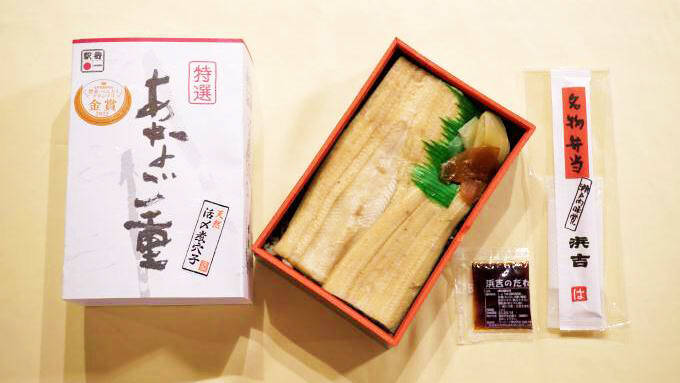 “大人の旅”なら、旅で味わう食事の質にもこだわりたいもの。三原・糸崎を拠点に広島・備後地方の駅弁を製造・販売する「浜吉」こだわりの駅弁といえば、「特選あなご重」(2100円)。この駅弁は全国の「ファベックス惣菜・べんとうグランプリ2022」の駅弁・空弁部門で、特に優れた弁当に与えられる「金賞」を受賞しました。掛け紙には“天然活き〆煮穴子”の文字が躍ります。通常は予約制で販売されています。