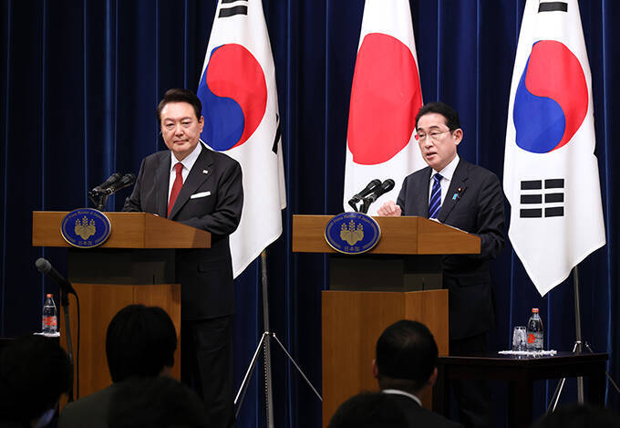 2023年3月16日、共同記者会見~出典:首相官邸HPより(https://www.kantei.go.jp/jp/101_kishida/actions/202303/16korea.html)