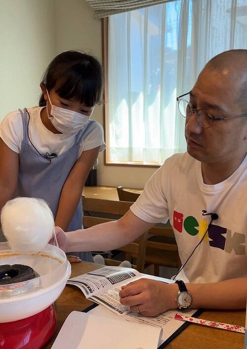 そして先日、第3回(7月7日放送)の収録が行われた。届いたメッセージ内容は「今度、三島に独演会でいらっしゃいますが、1時間早く三島に来て頂き我が家の娘に綿菓子の作り方を教えて欲しい」。どうやら独演会の会場からすぐの場所に在住とのことで、一之輔&番組スタッフで話し合いの末、静岡県三島市の大塚さん宅へ。5,000円で購入した綿菓子機にザラメを入れて9歳の女の子と綿が丸く出来る方法など楽しく伝授した。その後、大塚さん宅の近所の大ホールに向かった一之輔だった。