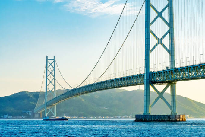 「吊り橋」は、大きな柱と強力な金属製ロープ、ケーブルで橋桁を支えています。また、いくつものケーブルを斜めに張って支える橋は「斜張橋」と言います。