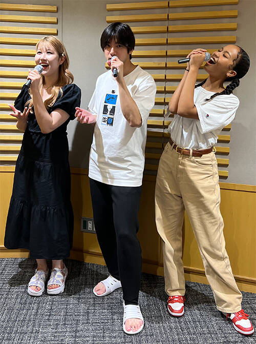 山田がメインメロディーを歌い、かれん、miyouが即興でハモると、山田は「そんなにスグ合わせられるの!?」と仰天。歌い終えると、かれん、miyouもハイテンションで「サイコー!」「なかなか男の人の声とハモることがないから新鮮で。ありがとうございます」と感想。