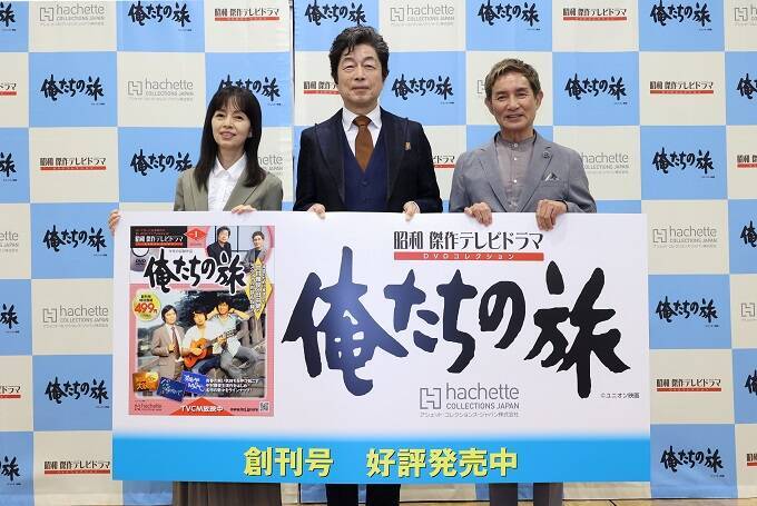 左から 岡田奈々、中村雅俊、田中健 『俺たちの旅』「昭和 傑作テレビドラマDVDコレクション」創刊記念 記者発表会にて