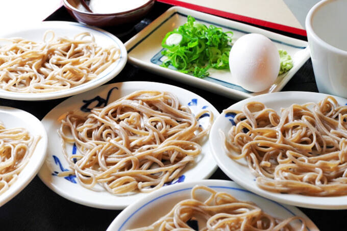 そばの量は一人前が「5枚1組」で、地元では箸を立てた高さの分量が「成人男性の一人前」と言われています。枚数に換算すると15皿~20皿くらいだそうです。