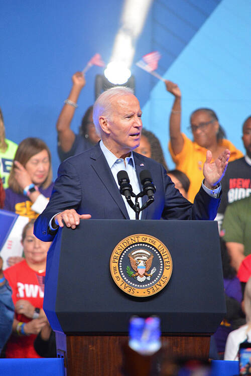 米ペンシルベニア州フィラデルフィアで開かれた集会で演説するバイデン大統領=2023年6月17日 写真提供:産経新聞社