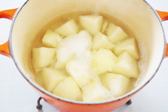 「ひたひた」は、主にジャガイモやカボチャなどをほっくり仕上げたいときの水加減です。具体的には「食材の表面が水に浸かるか、わずかに水面から出るくらい」とされています。