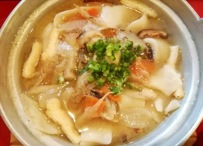 大分県の郷土料理に「だんご汁」という汁物があります。味噌仕立てで、小麦粉を練ってつくられた「だんご」が入っています。ただ、大分の「だんご汁」の場合は丸い形ではなく、平たい麺のような形をしています。