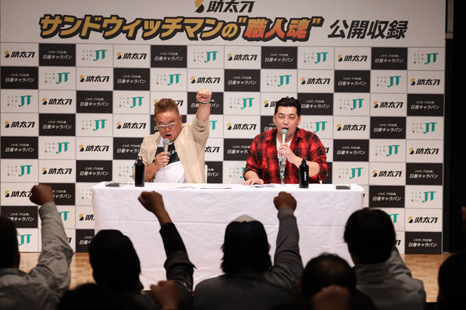 10月27日(日)、お笑いコンビ・サンドウィッチマンの伊達みきおと富澤たけしがパーソナリティを務めるラジオ番組『サンドウィッチマンの「職人魂」』の公開収録が行われ、東京・有楽町のニッポン放送イマジンスタジオに集まった、建設業界で働く職人約100名とともに、職人ならではのトークや企画などが展開された。
