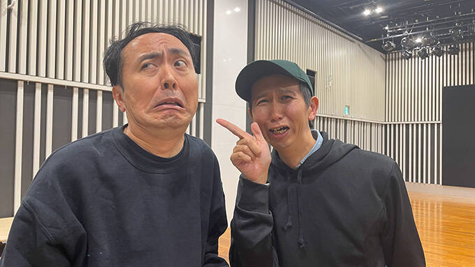 プロ野球の話題で盛り上げるアンガールズ田中(左)と山根(右)