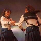 すると、ステージ上に見覚えのある衣装を着た三期生が再登場。照明が当たると、欅坂46時代の初期衣装を身にまとった11人が姿を現し、客席からどよめきの声が上がる。