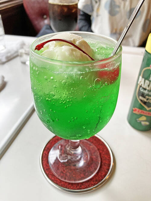 メロンの他、青の「ブルーハワイ」、赤の「ストロベリー」など、最近はそのカラフルさから、インスタ映えするとして人気がありますが、当時のクリームソーダは、まさに高度経済成長期の象徴であったのだと思います。