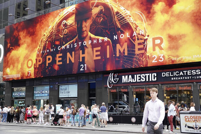 米ニューヨークに掲示された映画「オッペンハイマー」の広告=2023年7月3日(共同)