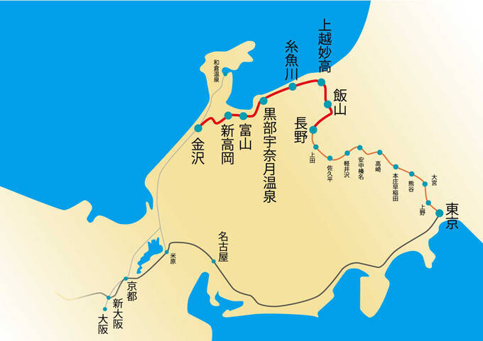 路線図 ※北陸新幹線 金沢―敦賀間 開通前のもの