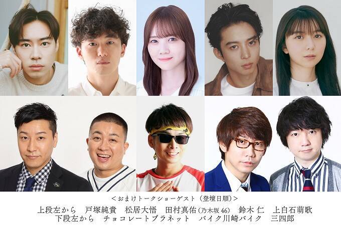 開幕初日を除く平日夜と日曜の終演後に開催される「おまけトークショー」では、キャストが舞台上にゲストを招いてアフタートークを届ける。ゲストは、過去に“ニッポン放送×上田誠”舞台シリーズに出演した上白石萌歌、戸塚純貴、鈴木仁、田村真佑(乃木坂46)、『オールナイトニッポン0(ZERO)』パーソナリティの三四郎、ヨーロッパ企画やキャストと縁の深い松居大悟、チョコレートプラネット、バイク川崎バイク、そして原作者の万城目学と、ニッポン放送開局70周年記念にふさわしくバラエティに富んだ豪華な面々が勢ぞろい。