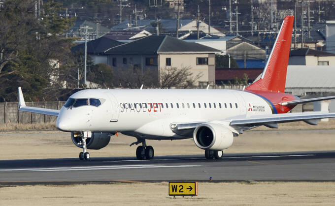 撤退した三菱重工のスペースジェットの試験機=2020年3月、愛知県営名古屋空港 写真提供:共同通信社