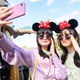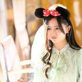 その後、「ディズニー★JCBカード」会員限定のグリーティングに訪れ、会いたかったミッキーマウスと満面の笑みで記念撮影をする。