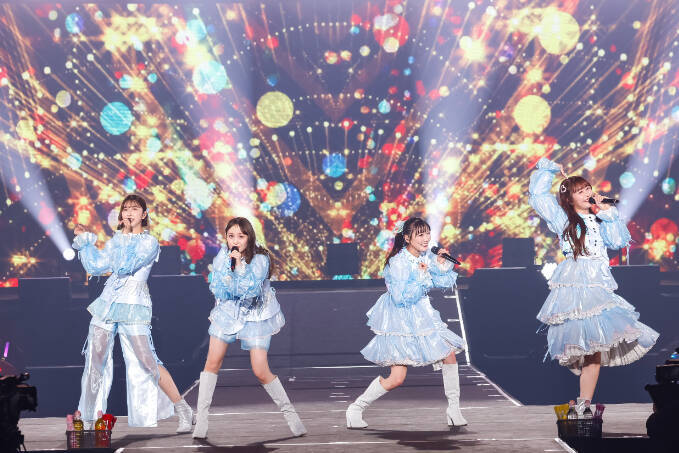 アンコールでは、「青春賦」で再び早見とコラボレーション。桜の紙吹雪が舞う中で、美しいハーモニーを響かせ会場を魅了した。「皆さんと一緒に素晴らしいステージを過ごすことができて、夢のような1日でした。モノノフの皆さんも最高でした!」と感想を語って早見がステージを後にすると、再びももクロ4人となり「走れ! -ZZ ver.」と「誓い未来」を披露。会場には4色のサイリウムが輝き、まるで花畑のように彩られていた。