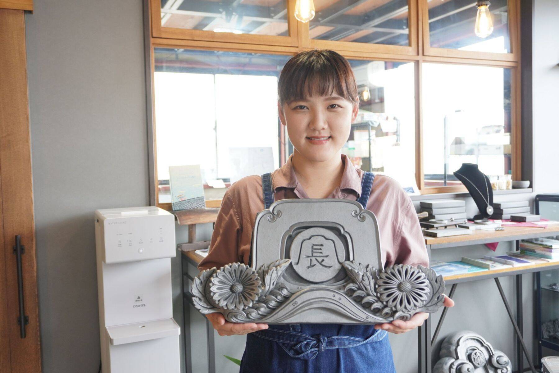 今も時々、愛知の師匠を訪ねて腕を磨きながら、お父様から現場の声を聞いて、「鬼師」としての道を一歩ずつ歩んでいる玲奈さん。去年9月には、巴川沿いに念願の窯を設けた「長澤瓦商店」のお店を開きました。