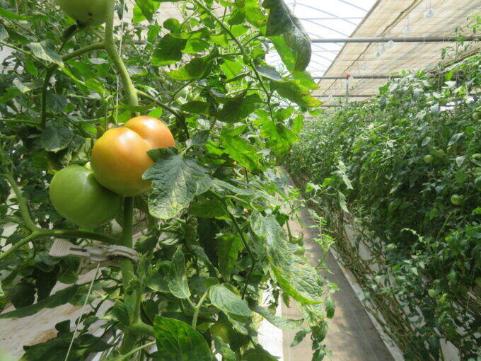 ハウスで栽培中の綿引農園のトマト