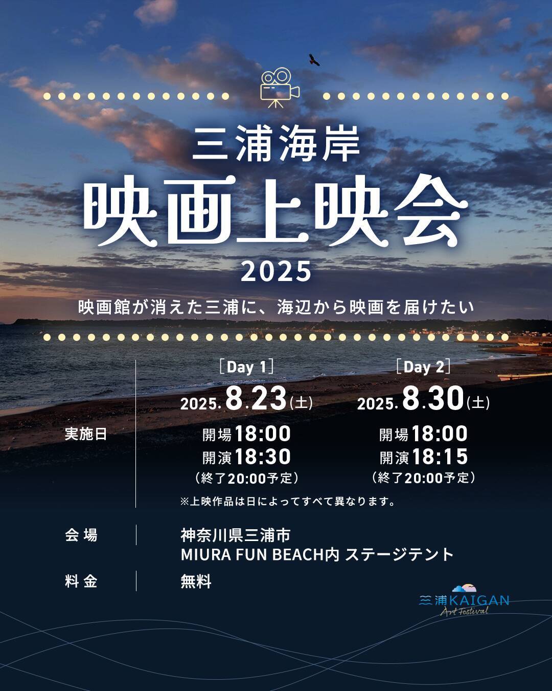 三浦市内に最後に映画館があったのは約45年前。現在では最寄りの映画館までは電車で約40分かかる。そんな三浦海岸で映画を上映したいという熱い想いの元、三浦海岸アートフェスティバルの一環として、2025年夏のクロージングを間近に控えるMIURA FUN BEACH 三浦海岸での上映会の開催が決まった。
