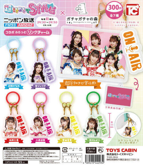 「超ときめき♡宣伝部」のメンバーがパーソナリティを務めるニッポン放送『超ときめき♡STYLE』(毎週日曜日 24:30~24:50)と、カプセルトイ専門店「ガチャガチャの森」がコラボしたカプセルトイの第1弾が、明日11月14日(金)より順次発売されることが決まった。
