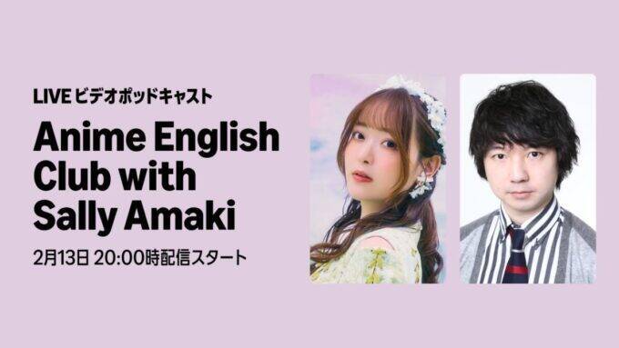 ニッポン放送が制作するオリジナル英語教養番組『Anime English Club with Sally Amaki』が、2月13日(金)20時から、 Amazon Musicの公式Twitchチャンネルにてビデオポッドキャストを生配信する。また番組で初めて迎えるゲストとして、三四郎・相田周二が登場し、アニメやアニソン、英語についてたっぷりとトークする。